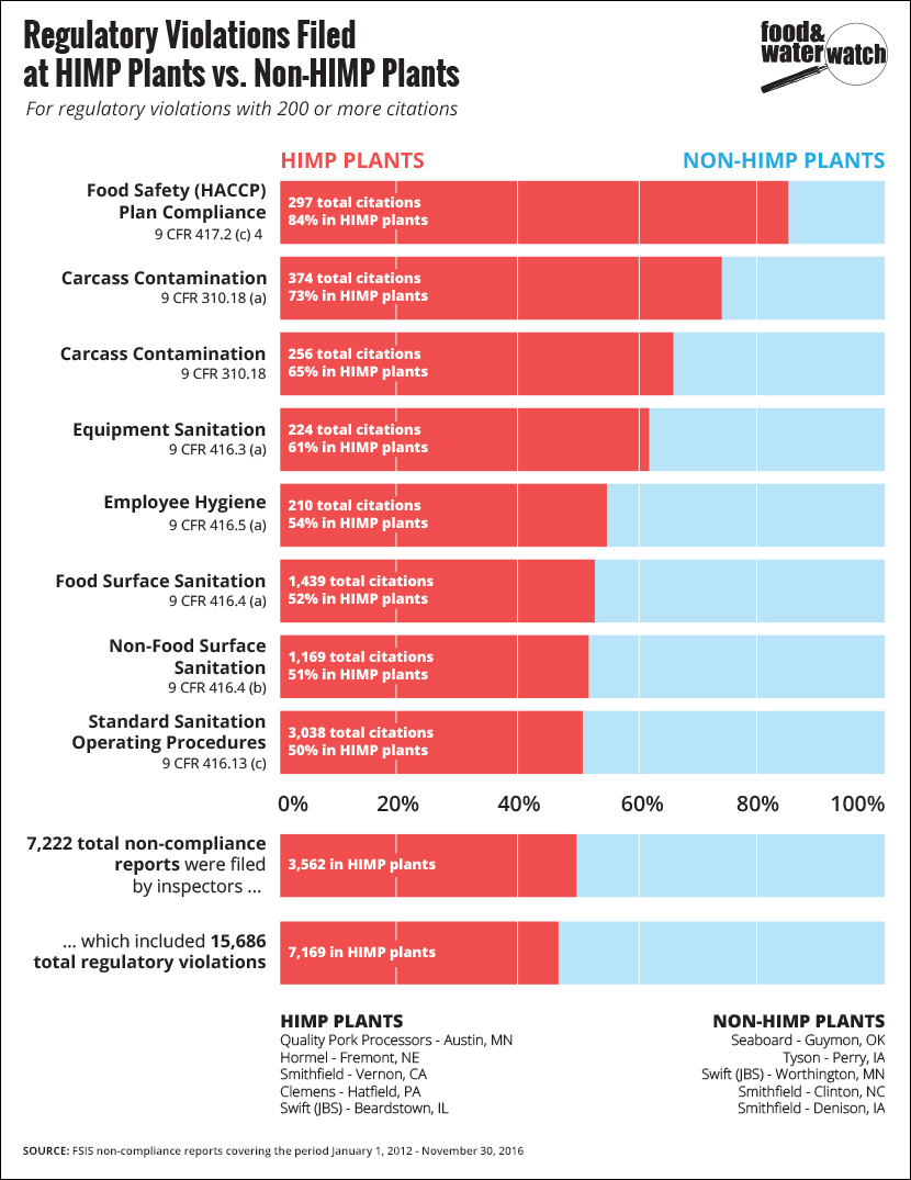 First, the U.S. Department of Agriculture (USDA) opened the door to privatized inspection in poultry plants in 2014. Now, they passed a new rule that opens the door for the same privatized inspection option in hog-slaughter plants. With privatized inspection, the number of government-employed inspectors on slaughter lines drops. At the same time, slaughter line speeds almost always increase. This has created serious food safety issues, including greater violations of critical food-safety standards.