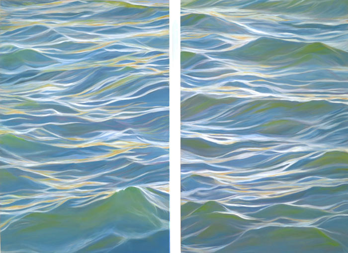 When you look at Fredericka Foster’s Bay Diptych, you can hear the water move. You can see the light dance and slide across the surface. You can feel the rhythm of it in your bones, in your chest, in your heart.