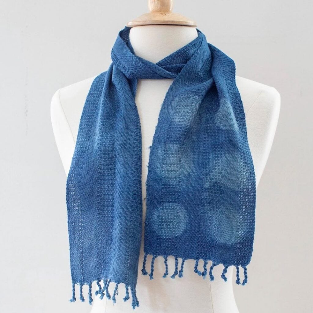 I’ve lived with that scarf for maybe two or three weeks, choosing the colors, choosing the pattern, dressing the loom, weaving it, washing it, ironing it, getting it ready, making the fringe. Then, I go to the event and see who’s interested in it and get to have a conversation with whoever buys it. We talk about why they chose it, what they like about the colors. It’s really a lot of fun.